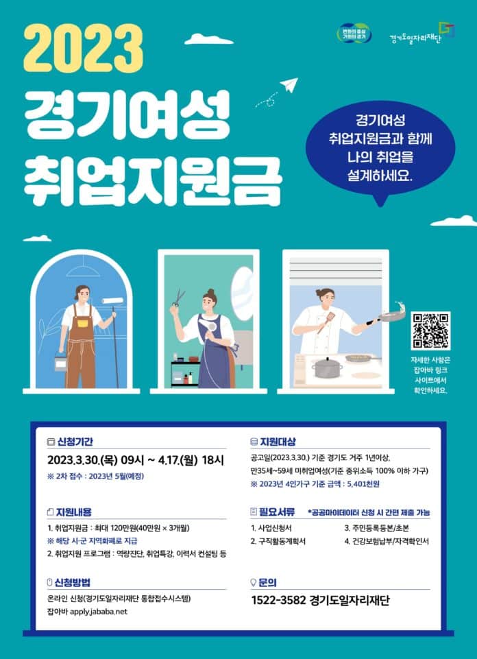 경기도는 30일부터 ‘2023년도 경기여성 취업지원금’ 1차 참여자 1천700여 명을 모집한다.